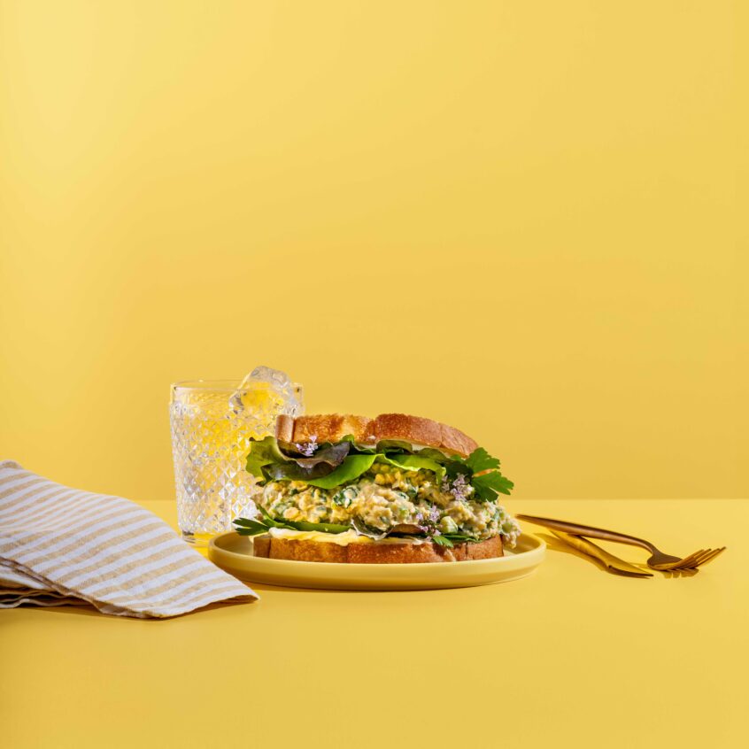 Spread Crystal Margarine on the bread of your choice, top with green leaf lettuce and 1/4 of the chickpea salad mixture.